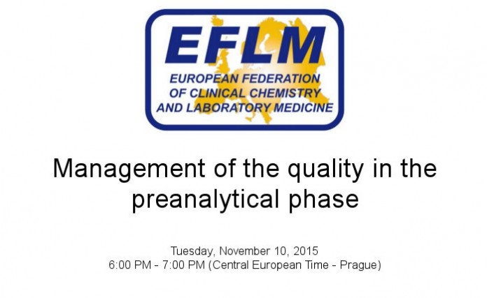 EFLM e-seminar: Management of the quality in the preanalytical phase