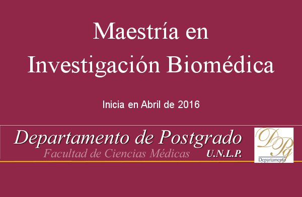 En abril del año 2016 se iniciará la Maestría en Investigación Biomédica en la Facultad de Ciencias Médicas de la Universidad Nacional de La Plata (UNLP), cuyo objetivo es cubrir dos áreas de vacancia en la formación de profesionales relacionados a la biología, bioquímica, biofísica, biotecnología, medicina, etc.: la Investigación básica y la Investigación clínica, particularmente Ensayos Clínicos.