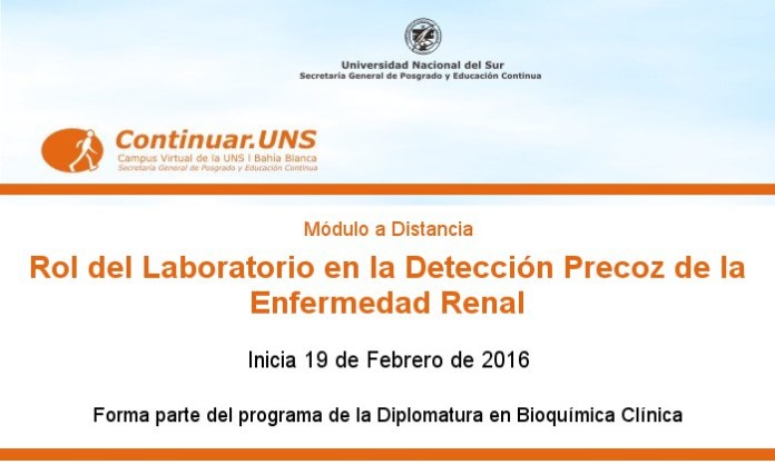 El 19 de Febrero de 2016 inicia el dictado del módulo 4: "Rol del Laboratorio en la Detección Precoz de la Enfermedad Renal"