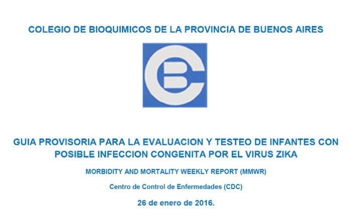 El trabajo fue publicado en “MMWR” de enero de 2016. La traducción al  castellano ha sido realizada por el Secretario del Colegio de Bioquímicos de la Provincia de Buenos Aires, Dr. Mario Héctor Dicroce, en base a gestiones realizadas por el Colegio para acceder a dicho artículo científico.