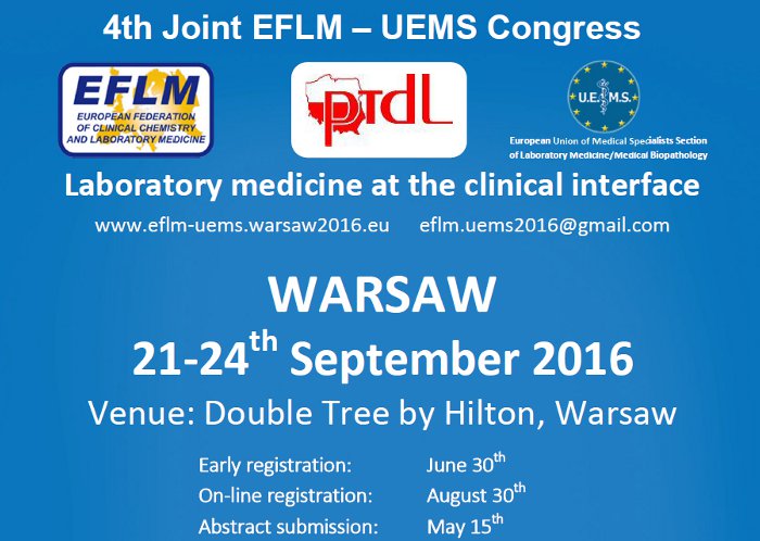 4th Joint EFLM-UEMS Congress “Laboratory Medicine at the Clinical Interface”. Warsaw, 21-24 September 2016