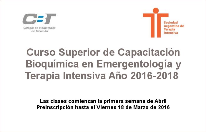 Curso Superior de Capacitación Bioquímica en Emergentología y Terapia Intensiva Año 2016-2018