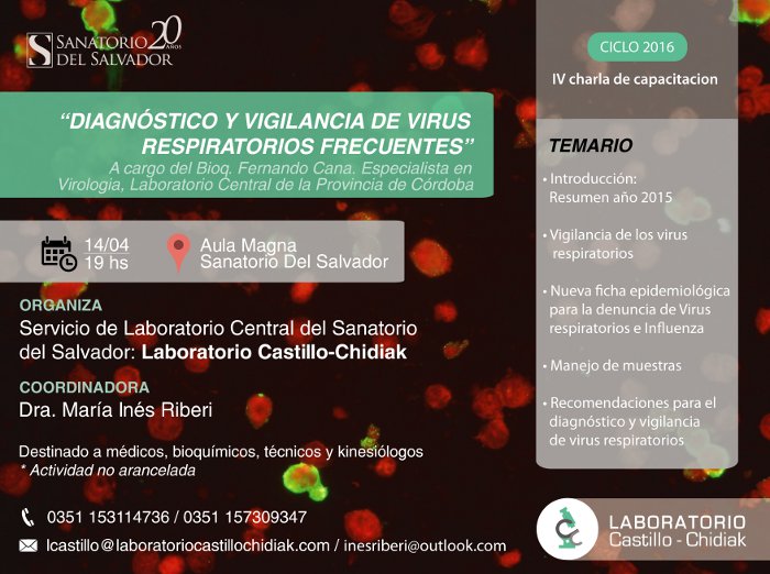 Jueves 14 de Abril, 19hs, Aula Magna Sanatorio del Salvador. Córdoba, Argentina. Actividad no arancelada.