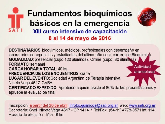 Dirigido a: bioquímicos, médicos, profesionales con desempeño en laboratorios de urgencias y estudiantes del último año de la carrera de bioquímica.
