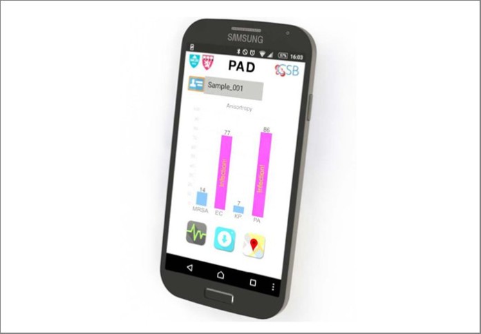 A smartphone readout from the Polarization Anisotropy Diagnostics (PAD) system reveals the pathogens responsible for an infection and factors such as antibiotic resistance (Chen-Han Huang, PhD, and Ki Soo Park, PhD, Center for System Biology, Massachusetts General Hospital)
