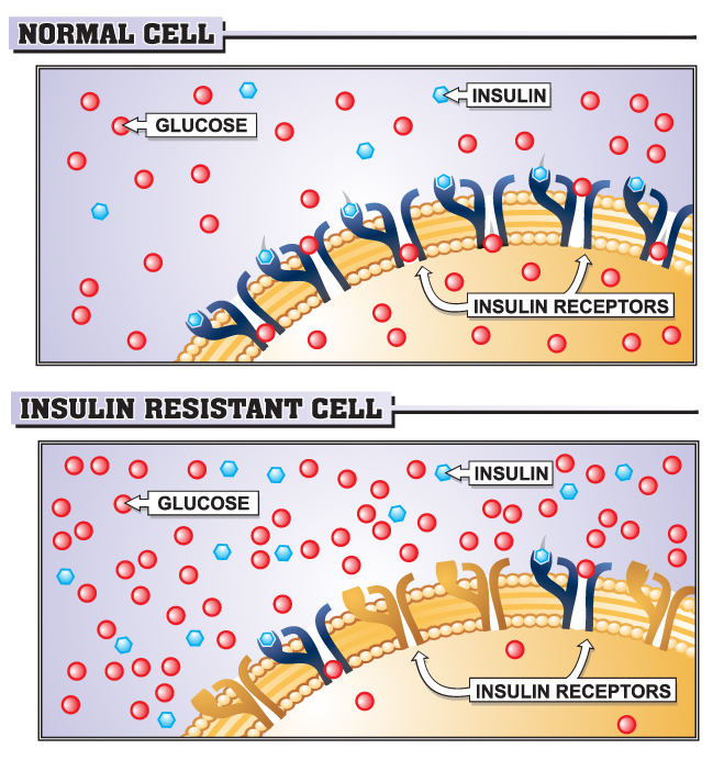 - Durante este período, en el cual los receptores celulares de insulina son reemplazados, la hiperglucemia moderada (como la que se halla inmediatamente después de una comida normal) puede necesitar niveles de insulina ligeramente superiores a los normales para retornar la glucemia a su valor normal. Esta hiperinsulinemia moderada puede retrasar el restablecimiento de la función normal del receptor de insulina (resistencia a la insulina aguda).