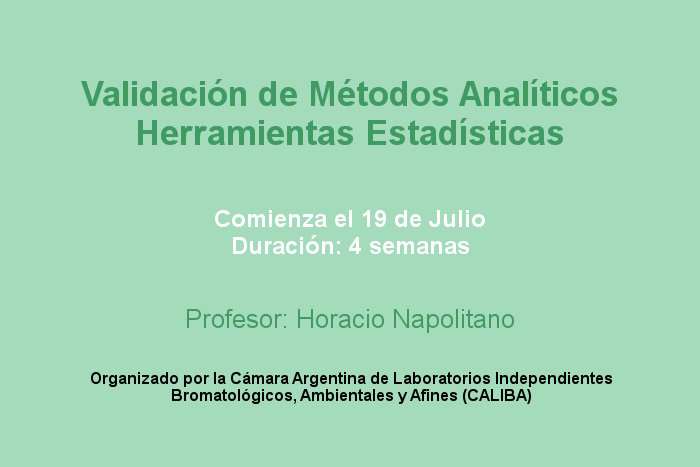 Comienza el 19 de Julio de 2016. Duración: 4 meses. Dictado por la Cámara Argentina de Laboratorios Independientes Bromatológicos, Ambientales y Afines (CALIBA).