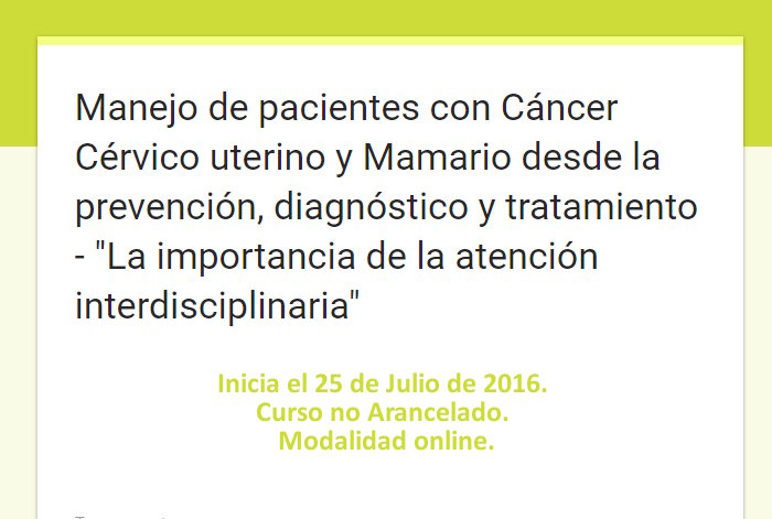 Curso virtual: Manejo de pacientes con Cáncer Cérvico uterino y Mamario desde la prevención, diagnóstico y tratamiento