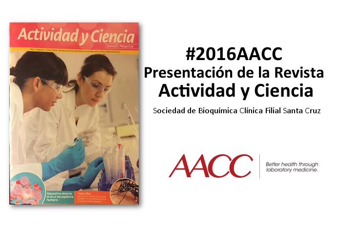 La Sociedad de Bioquímica Clínica Filial Santa Cruz realizó la presentación de su Revista ‘Actividad y Ciencia‘ en la 68° Reunión Científica Anual y Expo del Laboratorio Clínico de la AACC. La Directora de la Revista es la Dra. Elizabeth Artega.