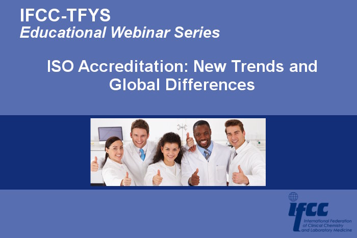 The first educational webinar for brought to you by the IFCC Task Force Young Scientists. This initial program is focused on ISO accreditation, the global differences across various regions, and new trends in the ISO accreditation process. By attending this session, attendees will gain understanding of: