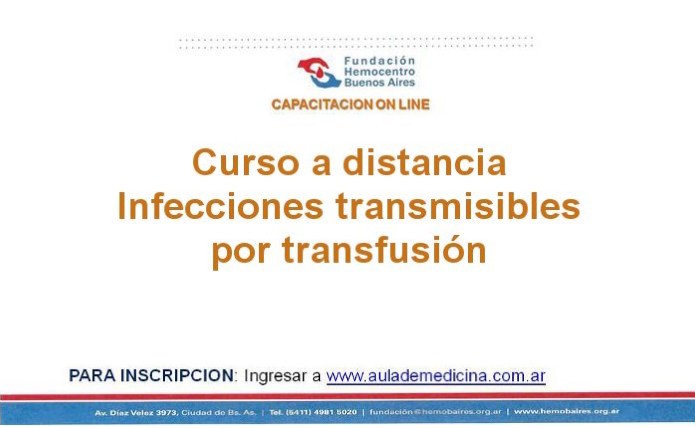 Que los cursantes adquieran conocimientos de Infecciones Transmisibles por transfusión y actualicen sus conocimientos favoreciendo la adquisición de herramientas que permitan resolver los desafíos diarios en la práctica de laboratorio y en el asesoramiento al donante.