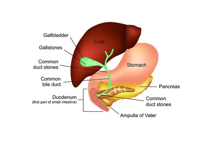La obstrucción del conducto colédoco por cálculos puede causar ictericia o colangitis. La obstrucción del conducto pancreático o ampolla de Vater por cálculos del colédoco puede causar pancreatitis.