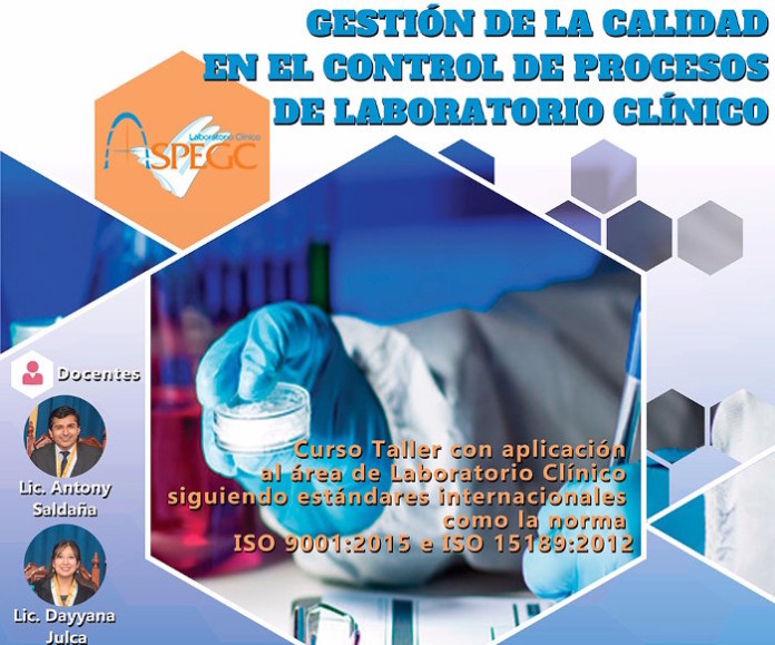 Curso Taller con aplicación al área de Laboratorio Clínico siguiendo estándares internacionales como la Norma ISO 9001:2015 e ISO 15189:2012. Organizado por la Asociación Peruana De Gestión de Calidad en Laboratorio Clínico (ASPEGC)