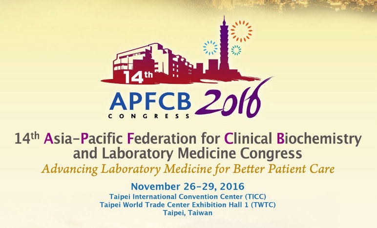 The 14th Asia–Pacific  Federation for Clinical Biochemistry and Laboratory Medicine Congress in will be held inTaiwan in 2016. It is the first time such a great event to be hosted by the Chinese Association for Clinical Biochemistry (CACB) in Taiwan.