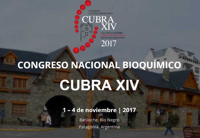 El 14° Congreso Nacional Bioquímico (CUBRA XIV) se llevará a cabo en la ciudad de San Carlos de Bariloche (Provincia de Río Negro) con actividades pre e intra congreso entre los días 31 de Octubre al 4 de noviembre de 2017.