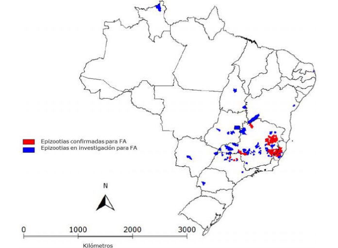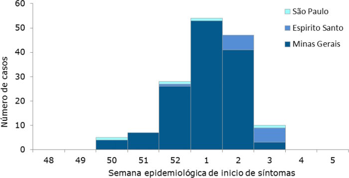 De acuerdo al sitio probable de infección, los casos sospechosos y confirmados se distribuyen en cinco estados: Bahia (10), Espírito Santo (67), Minas Gerais (802), São Paulo (7) y Tocantins (4). La tasa de letalidad entre casos sospechosos y confirmados en el estado de Espirito Santo es de 12%, en Minas Gerais 16% y en São Paulo 43%.