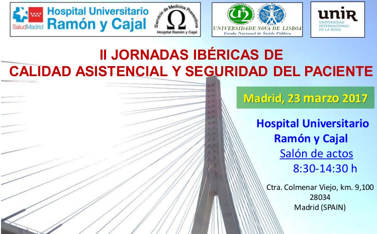 El Hospital Universitario Ramón y Cajal organiza las II Jornadas Ibéricas de Calidad Asistencial y Seguridad del Paciente dirigida a profesionales sanitarios tanto de Atención Primaria como de los hospitales, directivos y profesionales de las Unidades de Calidad, de las unidades de Gestión de Riesgos y al conjunto de profesionales con responsabilidades e interesados en el campo de la Seguridad del paciente y la Calidad asistencial.