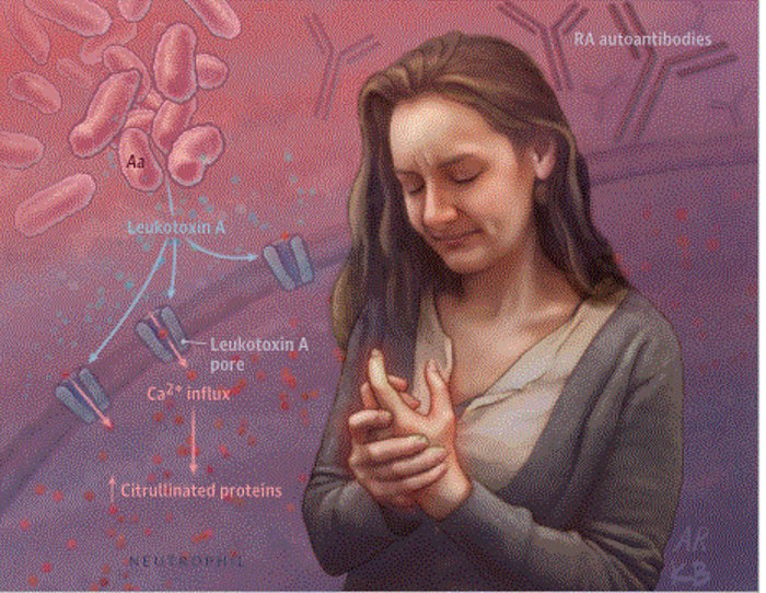 Oral bacteria may set off a cascade of events that leads to the autoimmune form of arthritis.