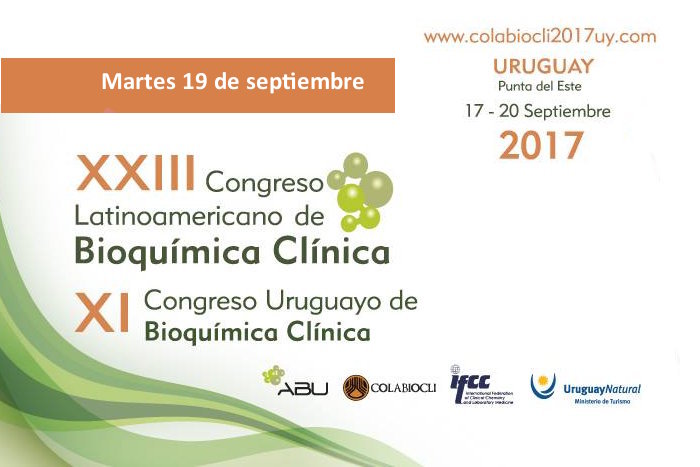El XXIII Congreso Latinoamericano de Bioquímica Clínica de la Confederación Latinoamericana de Bioquímica Clínica, organizado por la Asociación Bioquímica Uruguaya y se lleva a cabo en Punta del Este, del 17 al 20 de Septiembre de 2017.
