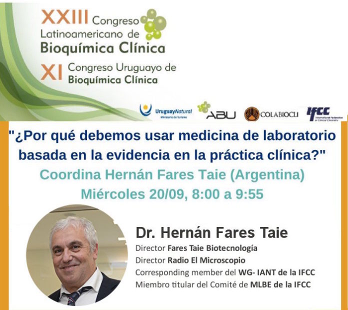 El Dr. Hernán Fares Taie coordinó el Simposio: ¿Por qué debemos usar MLBE en la práctica clínica? llevado a cabo el miércoles 20 de septiembre en el Congreso COLABIOCLI 2017, desarrollado en Punta del Este, Uruguay. El mencionado simposio fue organizado por la International Federation of Clinical Chemistry and Laboratory Medicine (IFCC).