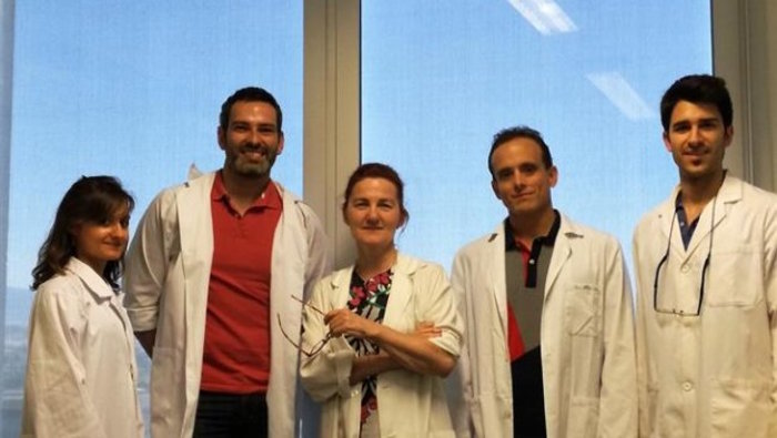 Parte del equipo de investigación. De izquierda a derecha: Iris Reina, Francisco Artacho, Marieta Fernández, Juan Pedro Arrebola y Vicente Mustieles. (UGR)