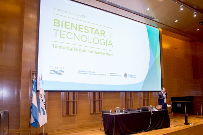 En el auditorio del Centro Cultural de la Ciencia (C3) del Polo Científico Tecnológico, el martes 3 de octubre de 2017 se llevó a cabo la conferencia “Bienestar y tecnología: tecnologías que nos hacen bien”, organizada por el Consejo Nacional de Investigaciones Científicas y Técnicas (CONICET), el Ministerio de Ciencia, Tecnología e Innovación Productiva de la Nación (MINCyT) y el Ministerio de Desarrollo Social.