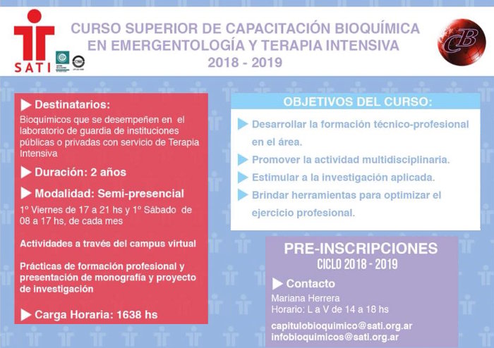 Organizado por el Capítulo Bioquímico de la Sociedad Argentina de Terapia Intensiva (SATI).