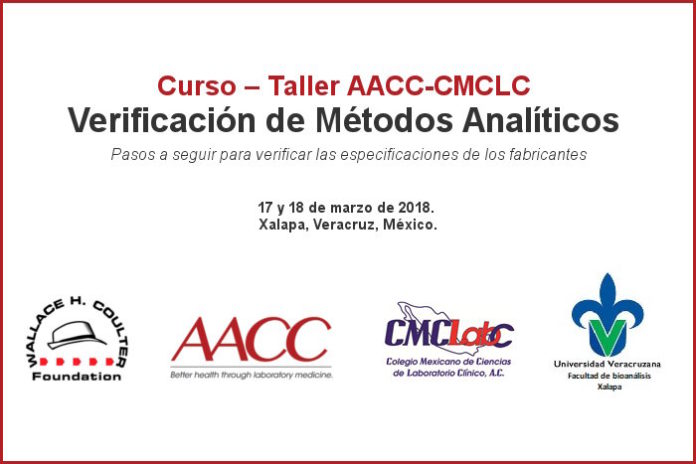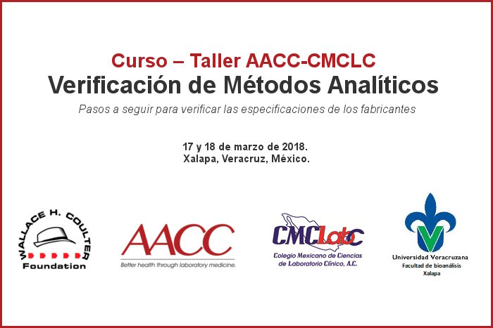 El Colegio Mexicano de Ciencias de Laboratorio Clínico y la Asociación Americana de Química Clínica (CMCLC-AACC) invitan al “Curso-Taller: Verificación de Métodos Analíticos. Pasos a seguir para verificar las especificaciones de los fabricantes.”