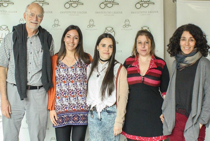 El premio Nobel de Fisiología o Medicina 2017, Dr. Michael Rosbash, con la Dra. Fernanda Ceriani y tres integrantes de su laboratorio, Lia Frenkel, Anastasia Herrero y Sofía Polcowñuk.