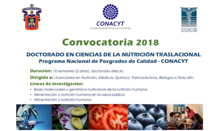 Doctorado en Ciencias de la Nutrición Traslacional – Convocatoria 2018