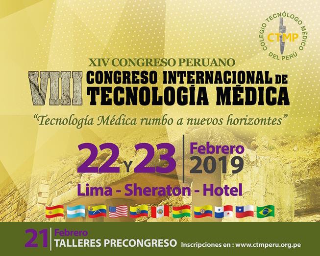 El VIII Congreso Internacional de Tecnología Medica y XIV Congreso Peruano denominado “Tecnología Medica rumbo a nuevos horizontes” se llevará a cabo 21, 22 y 23 de febrero del 2019 y se tendrá todo un despliegue de actividades académicas en el Hotel Sheraton en la ciudad de Lima, Perú.