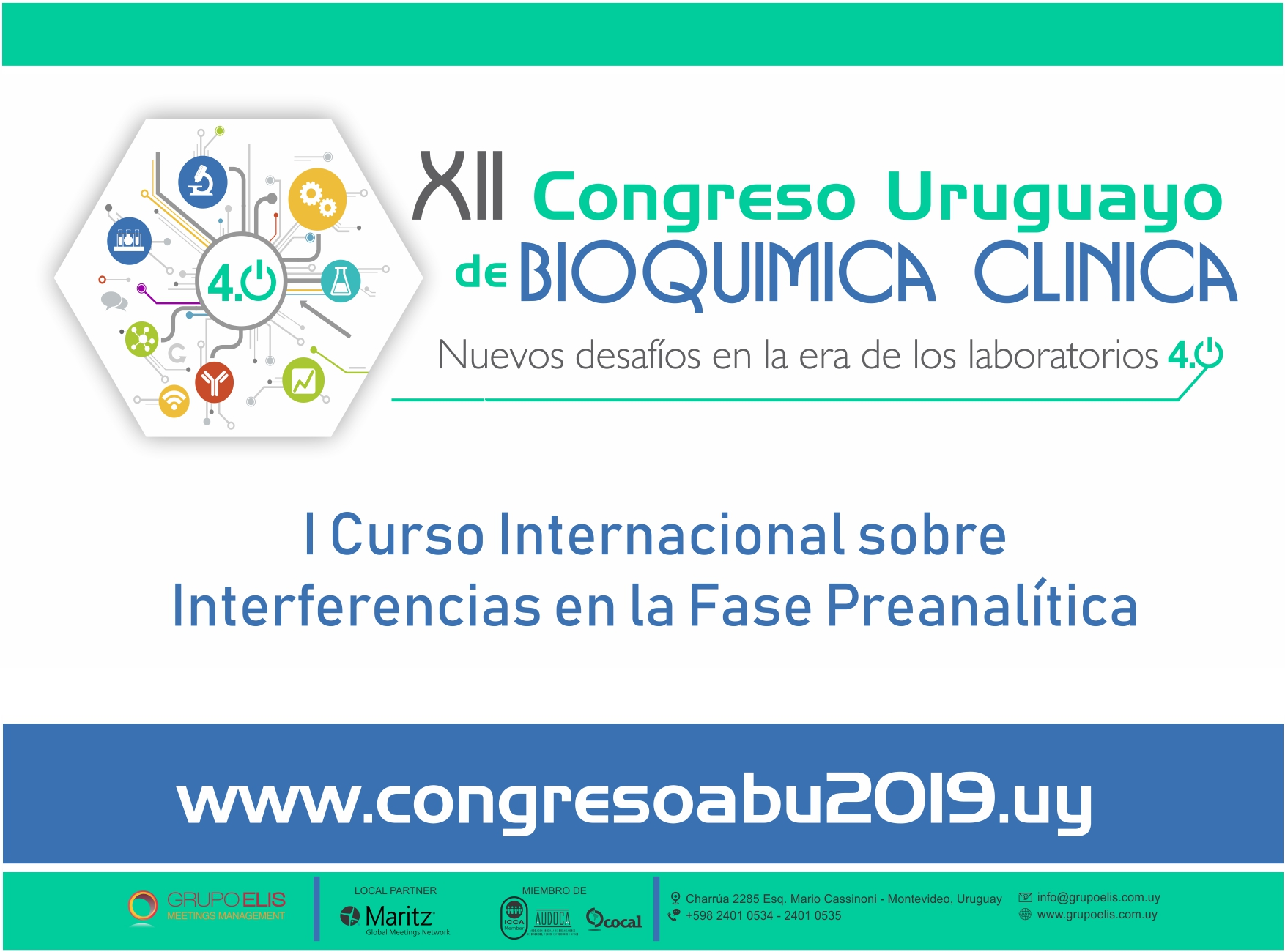 Del 3 al 5 de octubre se realizarán el XII Congreso Uruguayo de Bioquímica Clínica y el I Curso internacional sobre Interferencias en la Fase Preanalítica, en el Hotel Radisson de Montevideo.