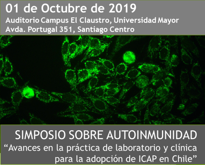 La Sociedad Chilena de Química Clínica invita a los colegas a inscribirse en el “Simposio sobre Autoinmunidad” que se llevará a cabo el 1° de octubre de 2019, en el Auditorio Campus el Claustro, Universidad Mayor, Avenida Portugal 351, Santiago, Chile.