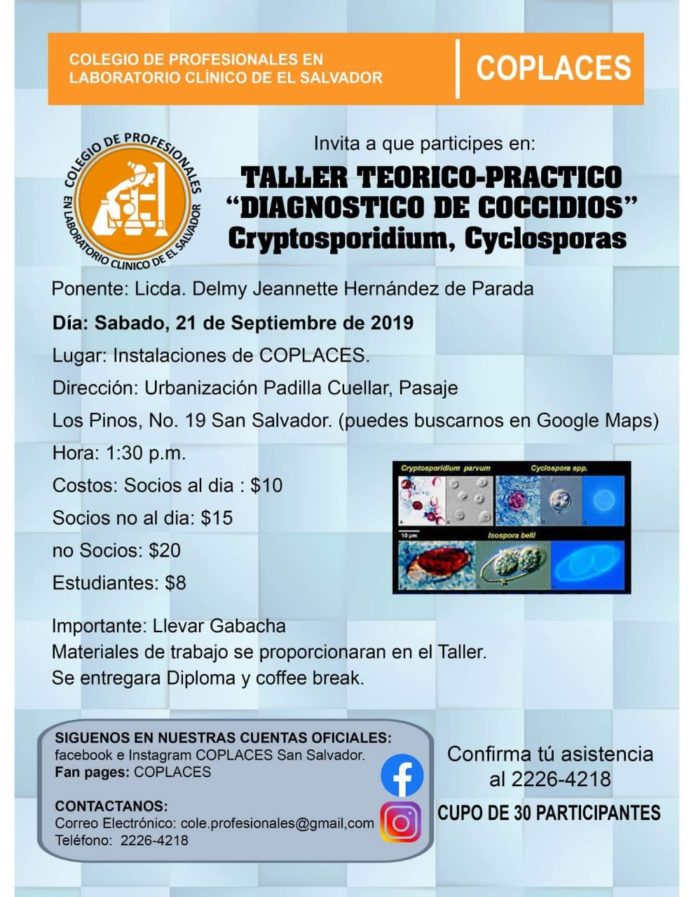 Talleres a dictarse en septiembre y octubre del Colegio de Profesionales en Laboratorio Clínico de El Salvador.