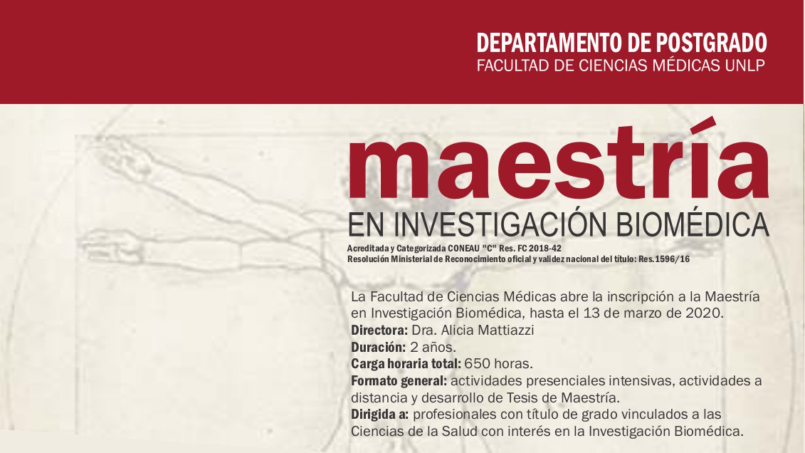 Más detalles: www.med.unlp.edu.ar/index.php/postgrado/carreras/maestrias