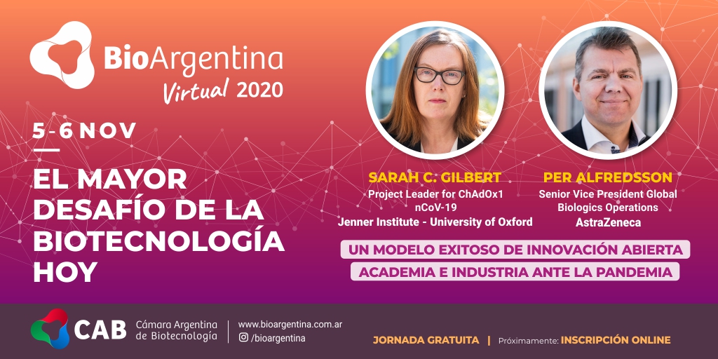 Charla de Sarah Gilbert (University of Oxford) y Per Alfredsson (AstraZeneca) dos protagonistas del mayor desafío actual de la biotecnología: desarrollar la vacuna contra Covid-19.