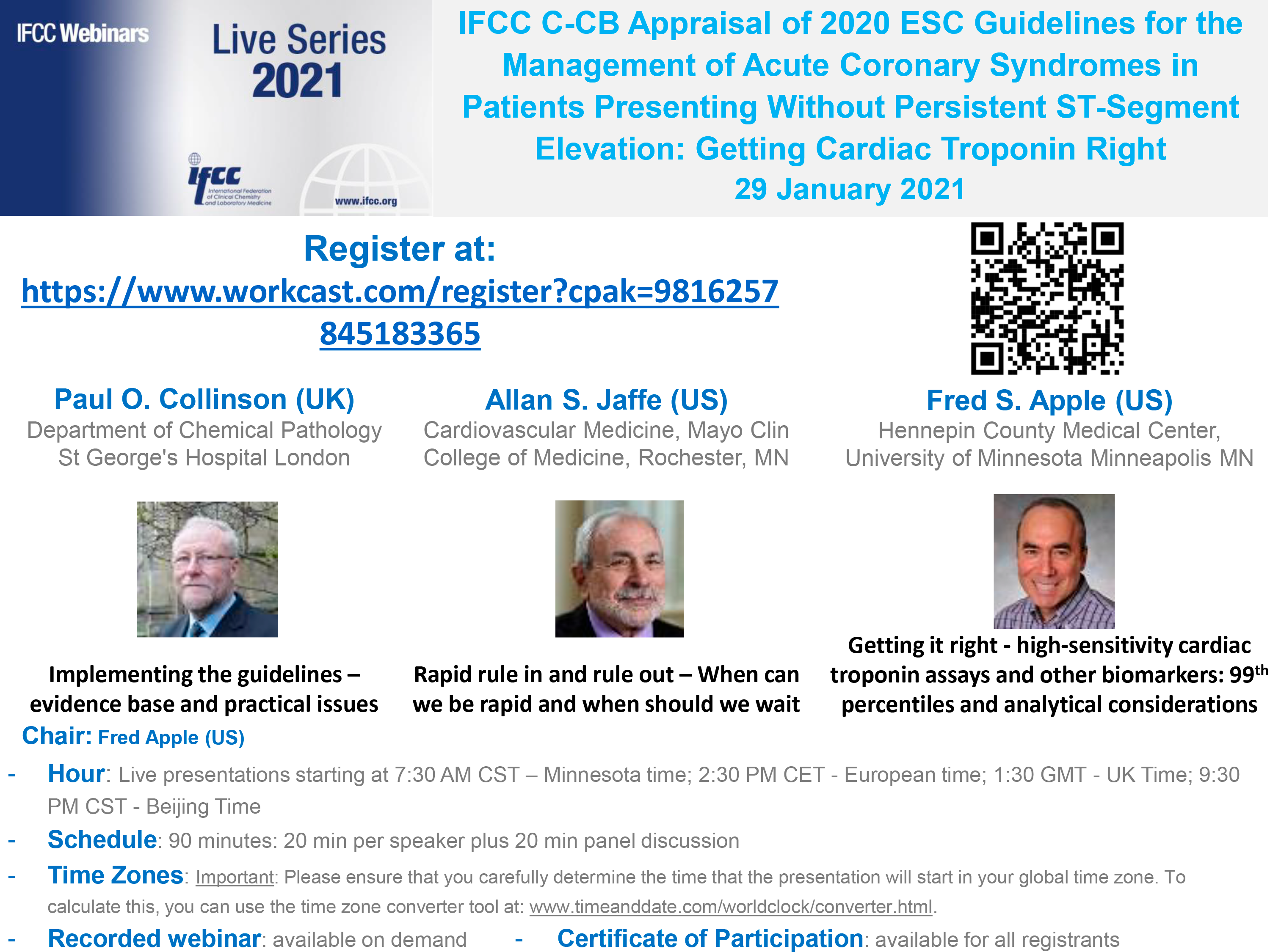 Webinarios IFCC – Series en vivo: Aplicaciones clínicas de los biomarcadores cardíacos