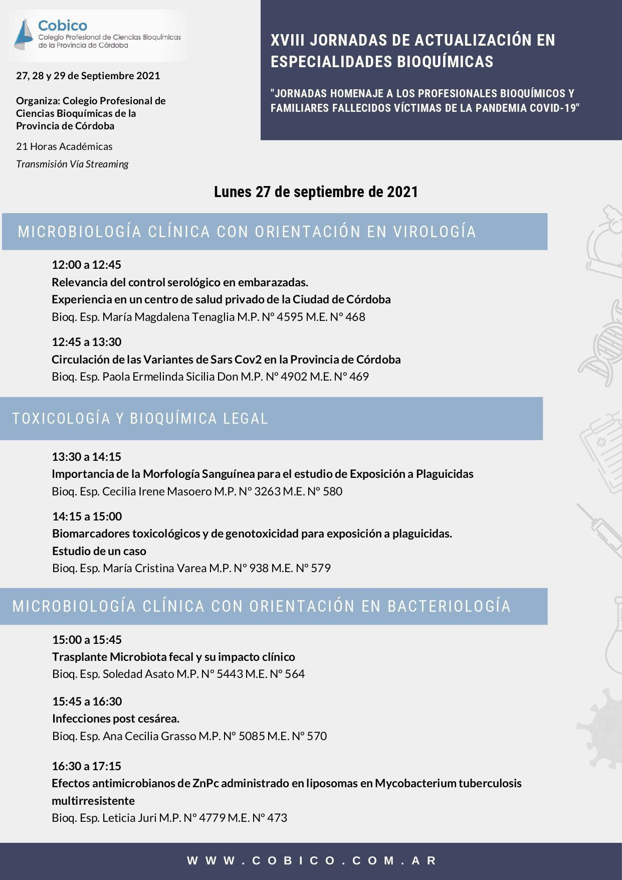Organiza el Colegio Profesional de Ciencias Bioquímicas de Córdoba.