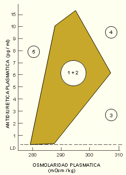 mmol/l) y una disminuida osmolaridad plasmática (<270 mOsm/kg).