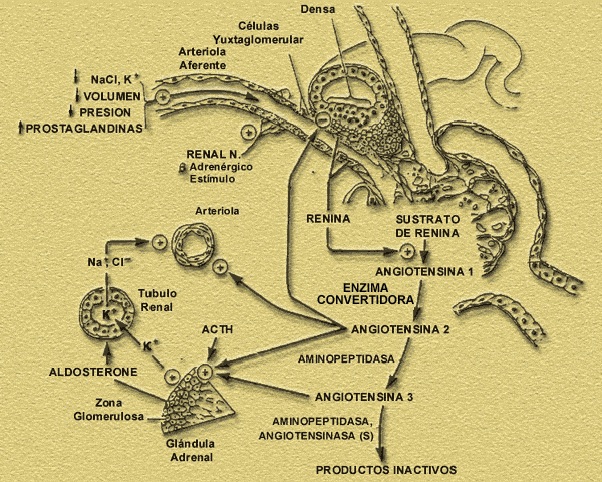 hidroelectrolítico. La renina producida en el aparato yuxtaglomerular