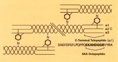 En el C-telopéptido, la secuencia Asp-Gli es un sitio potencial